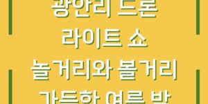 광안리는 부산의 대표적인 해변 중 하나로, 매년 여름이면 많은 관광객들이 찾는 인기 명소입니다. 특히 광안리의 여름 밤은 드론 라이트 쇼 덕분에 더욱 특별해집니다. 드론 라이트 쇼는 최신 드론 기술을 활용하여 …