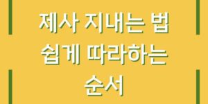 제사는 조상님을 기리고 그들의 은혜에 감사하는 중요한 의식입니다. 이 글에서는 제사를 지내는 방법과 순서에 대해 쉽게 따라할 수 있도록 구체적으로 안내드리겠습니다. 제사는 전통적인 의식이지만, 각 가정의 상황에 맞게 조절할 수 …