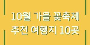 가을은 자연이 가장 화려한 색으로 물드는 계절입니다. 특히 10월은 다양한 꽃들이 만개하여 많은 이들에게 아름다움을 선사합니다. 이 시기에 열리는 여러 가을 꽃축제는 가족, 친구, 연인과 함께 특별한 추억을 만들 수 …