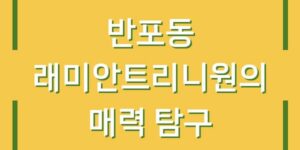 반포동은 서울의 서초구에 위치한 매력적인 지역으로, 최근 많은 관심을 받고 있는 ‘래미안트리니원’이 자리 잡고 있습니다. 이 아파트 단지는 현대적인 생활을 위한 다양한 편의시설과 쾌적한 환경을 갖추고 있어 많은 이들의 주목을 …