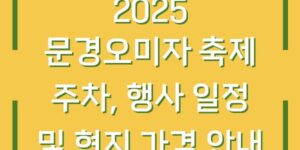 문경오미자 축제는 매년 많은 관광객들이 방문하는 지역 축제로, 오미자의 주산지인 문경에서 열리는 특별한 행사입니다. 2025년 제21회 문경오미자 축제는 9월 19일부터 21일까지 진행되며, 다양한 프로그램과 즐길 거리로 가득 차 있습니다. 이번 …