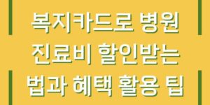 복지카드는 정부가 사회적 약자들, 즉 장애인, 국가유공자, 저소득층을 위해 발급하는 필수적인 지원 카드입니다. 이 카드를 소지한 분들은 다양한 혜택을 통해 병원 진료비를 절감할 수 있으며, 약국에서의 할인 혜택도 누릴 수 …