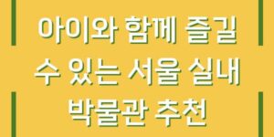 서울은 다양한 문화와 역사를 자랑하는 도시로, 특히 아이들과 함께할 수 있는 실내 박물관들이 많이 있습니다. 이러한 박물관들은 아이들이 재미있고 유익한 시간을 보낼 수 있도록 다양한 체험과 전시를 제공하고 있습니다. 이번 …