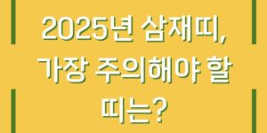 2025년은 ‘을사년’으로, 푸른 뱀의 해로 알려져 있습니다. 이 해는 동양에서 지혜와 변화의 상징으로 여겨지는 뱀의 해로, 많은 사람들에게 변화와 발전의 기회를 제공할 것으로 기대됩니다. 하지만, 특히 삼재띠에 해당하는 띠를 가진 …