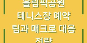 올림픽공원 테니스장은 서울에서 가장 인기 있는 테니스장 중 하나로, 많은 테니스 애호가들이 이곳에서 운동을 즐깁니다. 그러나 인기 있는 만큼 예약이 쉽지 않은 현실입니다. 특히 매크로 프로그램을 사용하여 자동 예약을 시도하는 …