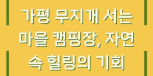 자연 속에서의 캠핑은 일상의 스트레스를 잊고, 마음의 평화를 찾기에 최적의 방법입니다. 가평에 위치한 ‘무지개 서는 마을 캠핑장’은 그러한 힐링의 기회를 제공하는 장소 중 하나입니다. 이 캠핑장은 아름다운 자연경관과 다양한 편의시설을 …