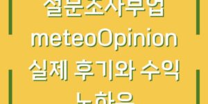 설문조사 부업은 요즘 많은 사람들에게 인기를 끌고 있는 수익 창출 방법 중 하나입니다. 특히 meteoOpinion과 같은 플랫폼은 사용자들에게 다양한 기회를 제공하며, 직접적인 경험을 통해 얻은 정보는 매우 소중합니다. 이번 글에서는 …