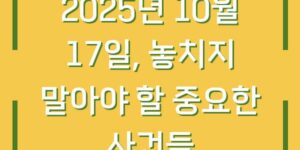 2025년 10월 17일은 특별한 날로, 여러 중요한 이벤트가 진행될 예정입니다. 특히, 제33회 흥부제가 개최되어 많은 이들의 관심을 받고 있습니다. 이번 흥부제는 다양한 프로그램과 활동으로 구성되어 있으며, 여러분에게 풍성한 즐거움을 제공할 …