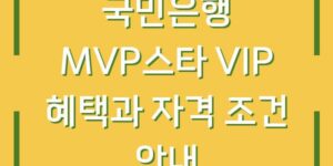 국민은행의 MVP 프로그램은 고객에게 다양한 혜택을 제공하기 위해 설계된 프로그램입니다. 그 중에서도 VIP 등급인 MVP스타는 특별한 혜택과 조건을 가지고 있습니다. 이번 글에서는 MVP스타의 혜택과 자격 조건에 대해 자세히 알아보겠습니다. MVP스타 …
