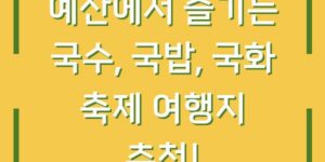 가을이 깊어가는 10월, 충남 예산에서는 특별한 축제가 열립니다. 바로 2024년 10월 17일부터 20일까지 진행되는 ‘예산 장터 삼국축제’입니다. 이 축제는 예산의 대표적인 음식인 국수와 국밥, 그리고 아름다운 국화를 주제로 한 행사로, …