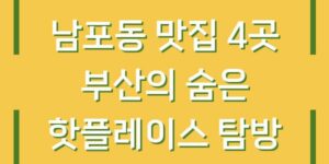 부산의 남포동은 그 매력적인 풍경과 맛있는 음식으로 많은 관광객과 지역 주민들에게 사랑받는 곳입니다. 이곳에서의 음식 여행은 단순한 식사를 넘어 부산의 문화와 정서를 경험하는 중요한 요소로 자리잡고 있습니다. 이번 글에서는 남포동의 …