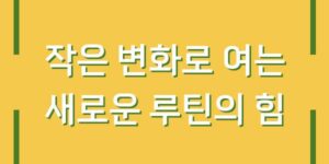 루틴의 중요성 루틴은 우리의 삶에서 매우 중요한 역할을 합니다. 매일 반복되는 일상은 우리가 안정감을 느끼게 해 주지만, 동시에 변화를 두려워하게 만들기도 합니다. 많은 사람들은 일상적인 루틴에서 벗어나고 싶어하지만, 한편으로는 그 …