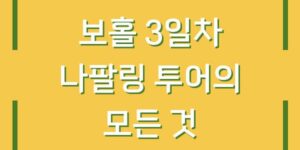 보홀 여행의 세 번째 날은 많은 기대와 설렘으로 가득 차 있습니다. 이 날의 하이라이트는 바로 나팔링 투어입니다. 이 투어는 원래 패키지에 포함되어 있지 않았지만, 친절한 가이드의 강력 추천으로 추가하게 되었습니다. …