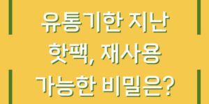 추운 겨울, 따뜻함을 선사하는 핫팩은 일상에서 없어서는 안 될 아이템입니다. 그렇지만 핫팩의 유통기한이 지나면 어떻게 해야 할지 고민하게 됩니다. ‘버려야 할까?’ ‘아직 쓸 수 있을까?’ 다양한 질문이 떠오르는데요. 오늘은 유통기한이 …