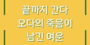 오다의 죽음과 그 의미 오다의 죽음은 단순한 캐릭터의 퇴장 이상의 의미를 지닙니다. 그의 죽음은 작품 내에서 여러 가지 상징적 요소를 포함하고 있으며, 많은 이들에게 깊은 여운을 남깁니다. 이는 단순히 한 …