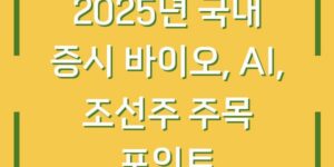 2025년의 국내 증시는 여러 요인으로 인해 높은 변동성을 보일 것으로 예상되고 있습니다. 특히, 바이오, 인공지능(AI), 조선주와 같은 특정 업종이 주목받고 있는 가운데, 이들 업종의 성장 가능성과 투자 전략에 대해 자세히 …