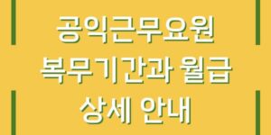 공익근무요원은 대한민국에서 군 복무를 대신하는 제도로, 사회에 기여하고 필요한 서비스를 제공하는 역할을 맡고 있습니다. 이 글에서는 공익근무요원의 복무기간과 월급에 대해 상세히 안내드리겠습니다. 공익근무요원의 복무기간 공익근무요원의 복무기간은 일반적으로 21개월입니다. 이는 군 …