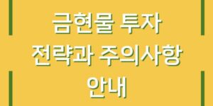 금은 오랜 역사 동안 안전자산으로 여겨져 왔으며, 최근 경제 불안정과 인플레이션의 우려로 인해 금 투자에 대한 관심이 더욱 높아지고 있습니다. 금현물 투자 방법은 다양하며, 각 방법의 특징과 장단점을 알아보는 것이 …