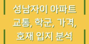 성남자이 아파트는 성남시 내에서 인기 있는 주거 지역 중 하나로, 교통과 학군, 가격, 그리고 다양한 호재가 많은 지역입니다. 본 글에서는 성남자이 아파트의 교통 상황, 학군, 가격 동향, 그리고 호재에 대해 …