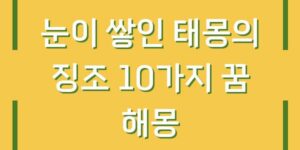 꿈은 종종 우리 무의식의 표현으로, 특히 태몽은 새로운 생명과 관련된 특별한 징조로 해석됩니다. 오늘은 눈이 쌓인 태몽의 다양한 해몽에 대해 알아보겠습니다. 눈은 전통적으로 정화, 재물, 복을 상징하며, 이러한 상징은 꿈의 …