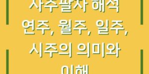 사주팔자는 동양의 전통적인 점술 방식 중 하나로, 개인의 생년월일과 시간을 바탕으로 운명을 해석합니다. 이 글에서는 사주팔자의 구성 요소인 연주, 월주, 일주, 시주에 대해 자세히 살펴보고, 각 요소의 의미와 해석 방법에 …