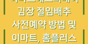 김장철이 다가오면서 많은 가정에서 김장 준비에 한창입니다. 김장 준비에서 가장 중요한 요소 중 하나인 절임배추를 어떻게 준비할지 고민하는 분들이 많으실 텐데요. 이번 블로그에서는 이마트에브리데이와 홈플러스에서 절임배추를 사전예약하는 방법과 예약 기간에 …