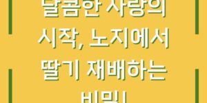 딸기는 많은 사람들에게 사랑받는 과일입니다. 특히, 노지에서 재배한 딸기는 자연의 맛을 그대로 느낄 수 있어서 더욱 특별하죠. 이번 글에서는 노지 딸기를 키우기 위한 방법과 비밀을 알아보겠습니다. 준비되셨나요? 1. 노지 딸기 …