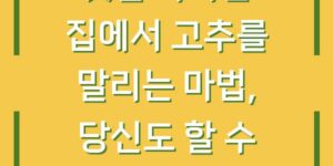 햇빛에 말린 태양초 고추는 그 맛과 영양이 뛰어나 많은 사람들이 선호합니다. 하지만 직접 고추를 말리는 과정은 생각보다 복잡할 수 있습니다. 이 글에서는 집에서 쉽게 고추를 말리는 방법에 대해 알아보겠습니다. 고추 …