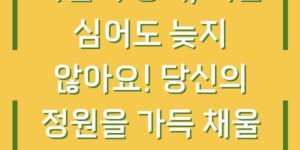 마늘은 다양한 요리에 빠질 수 없는 재료이자, 집에서 손쉽게 키울 수 있는 작물입니다. 이 글에서는 마늘 심는 시기와 방법에 대해 자세히 알아보겠습니다. 특히, 늦게 심어도 괜찮은 이유와 심는 팁을 소개할게요. …