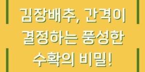 김장배추는 한국의 대표적인 겨울철 김치 재료로, 그 맛과 풍미로 많은 사랑을 받고 있습니다. 하지만 건강하고 맛있는 김장배추를 재배하기 위해서는 심는 간격과 모종 재식거리를 신중하게 생각해야 합니다. 이번 글에서는 김장배추를 성공적으로 …