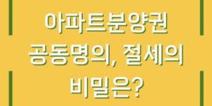 아파트분양권 공동명의, 절세의 비밀은?