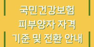 국민건강보험 제도는 한국의 국민 모두가 건강보험 혜택을 받을 수 있도록 설계된 제도로, 그 중에서도 피부양자 제도는 직장가입자의 가족이 별도로 건강보험료를 납부하지 않고도 혜택을 받을 수 있는 중요한 방식입니다. 하지만 2025년부터 …