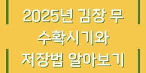 김장철이 다가오면서 많은 가정에서 김장 재료 준비에 분주해지고 있습니다. 그중에서도 무는 김치의 핵심 재료로, 그 품질이 김치의 맛과 식감에 직접적인 영향을 줍니다. 이번 글에서는 2025년 김장 무의 수확 시기, 수확 …