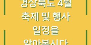 경상북도는 봄이 찾아오는 4월, 다양한 축제와 행사로 가득 차 있습니다. 따뜻한 날씨와 함께 화사하게 피어난 벚꽃은 많은 이들의 발길을 끌고, 지역 특산물과 문화를 체험할 수 있는 기회를 제공합니다. 이번 포스트에서는 …