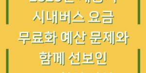 2025년부터 세종시의 시내버스 요금이 전면 무료화될 예정입니다. 이는 최민호 세종시장님이 공약으로 내세운 사항으로, 세종시는 대중교통 혁신을 위한 종합적인 방안을 마련하였습니다. 세종시의 대중교통 무료화는 단순히 요금 면제에 그치지 않고, 교통체증 완화, …