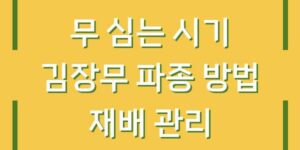 안녕하세요, 오늘은 김장무의 파종 시기, 재배 방법, 그리고 관리 요령에 대해 자세히 알아보겠습니다. 김장무는 한국 전통 김장 문화에서 중요한 역할을 하는 채소로, 가을에 수확하여 김치에 담그거나 다양한 요리에 활용됩니다. 따라서 …
