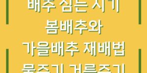 배추는 가정에서도 손쉽게 재배할 수 있는 채소로, 특히 봄배추와 가을배추는 많은 사람들이 선호하는 작물입니다. 배추는 서늘한 기후에서 잘 자라며, 적절한 관리만 해준다면 누구나 건강한 배추를 수확할 수 있습니다. 이번 글에서는 …