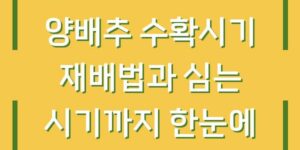 양배추는 많은 가정에서 사랑받는 인기 있는 채소입니다. 영양가가 풍부하고 다양한 요리에 활용될 수 있어, 많은 분들이 집에서 직접 재배를 시도하고 있습니다. 이번 글에서는 양배추의 재배법, 심는 시기, 수확 시기에 대해 …