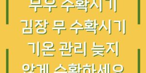김장철이 다가오면 많은 가정에서 무우, 특히 김장 무의 준비에 바쁘신 모습을 쉽게 볼 수 있습니다. 김장 무는 김치의 핵심 재료로, 그 품질과 맛은 수확 시기와 관리 방법에 따라 크게 달라질 …
