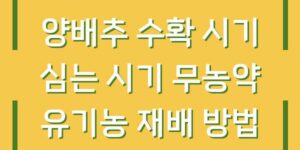 양배추는 다양한 요리에 활용되는 건강한 채소로, 많은 분들이 직접 재배에 도전하고 싶어 하십니다. 특히 무농약 유기농 재배 방법은 건강을 중시하는 현대인들에게 매우 인기가 높습니다. 이번 섹션에서는 양배추의 심는 시기와 수확 …
